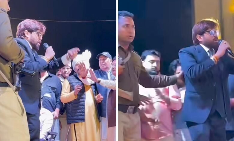 मासूम शर्मा के तेवर इतने तीखे थे कि उन्होंने माइक पर ही एलान कर दिया कि वे किसी विधायक, मंत्री या सरपंच को कुछ नहीं समझते। उन्होंने दो-टूक लहजे में कहा, “देखना है तो नीचे बैठकर देखो, वरना चले जाओ।” इस दौरान मंच पर मौजूद पुलिसकर्मी स्थिति को नियंत्रित करने की कोशिश करते दिखे। वीडियो में साफ दिख रहा है कि एक पुलिस अधिकारी गायक को शांत करने या वहां से हटाने की कोशिश कर रहा है लेकिन मासूम शर्मा के तेवर कम नहीं हुए।